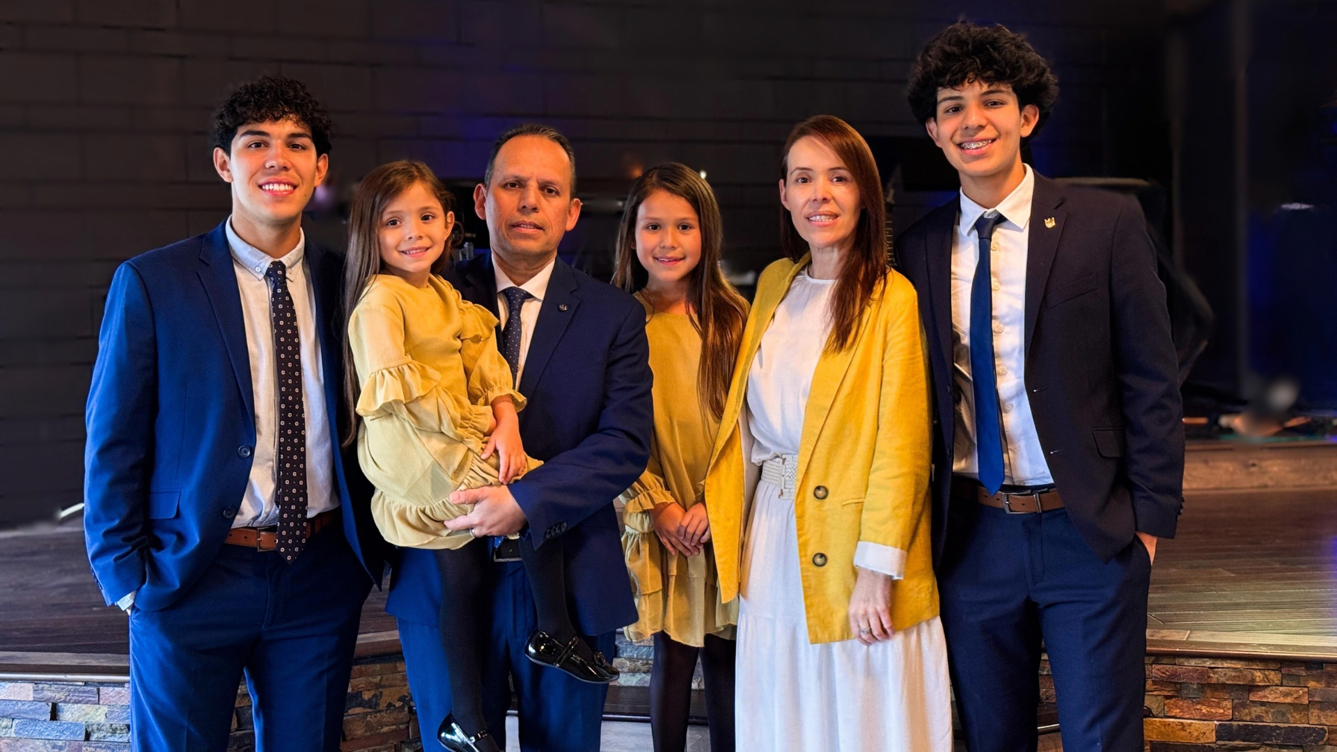 Pastor Diego Ramirez y su esposa Mary, sus hijos Daniel, Matthew, Ella y Emmie Sophia